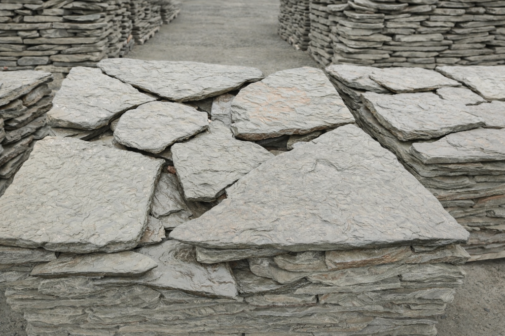 Плитняк песчаник дракон серо-зелёный галтованный для облицовочных работ 10-20 мм